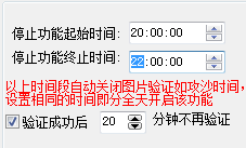 举个晚上8点-10点攻城例子,停止功能起始时间为20:00:00,停止功能终止时间为22:00:00,就是指晚上8-10点停止验证,然后保存,立即生效。